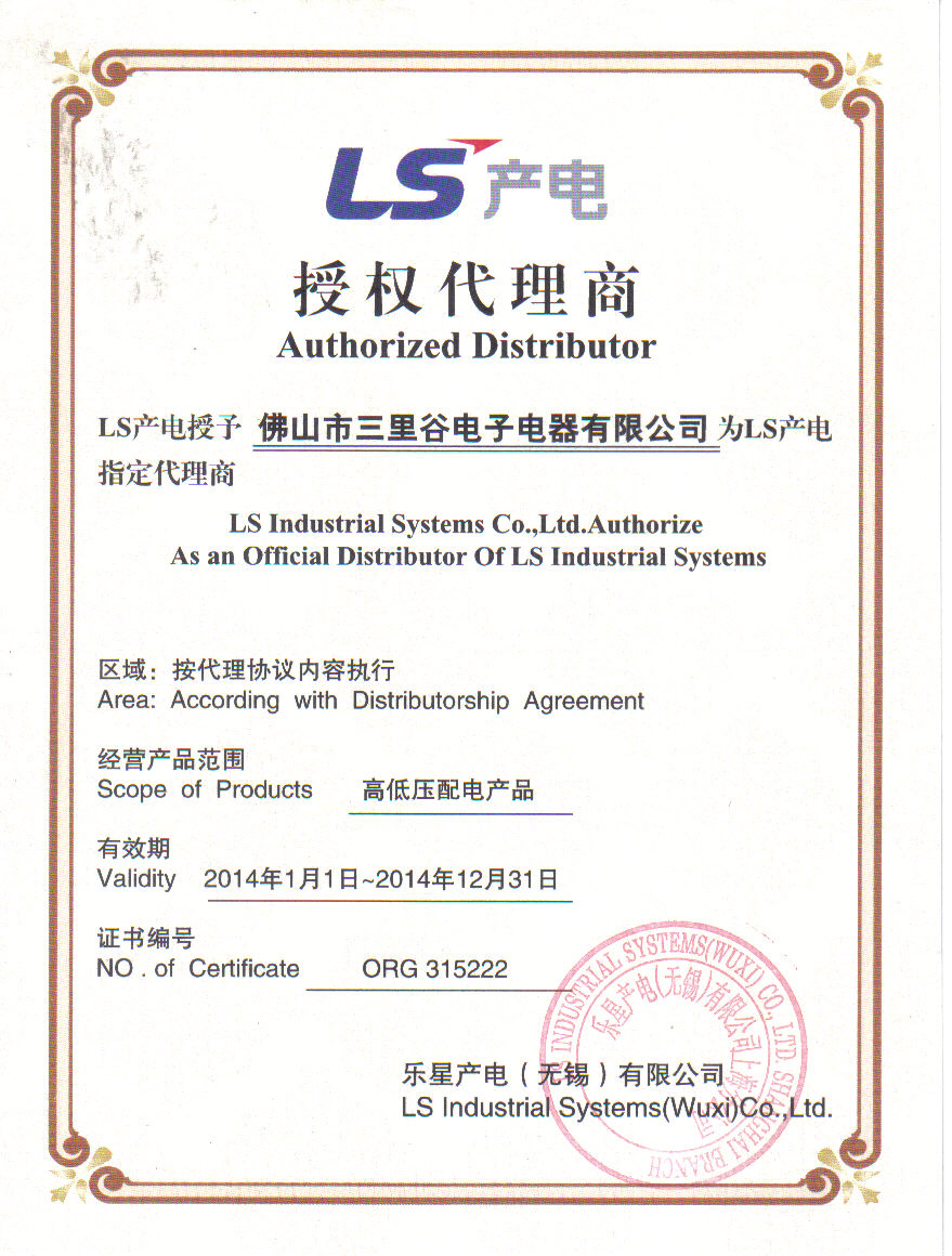 佛山市三里谷電子電器有限公司成立于2004年,是韓國LS產(chǎn)電華南地區(qū)核心代理商;同時專業(yè)代理、經(jīng)銷日本富士、臺灣士林、法國海格電氣、上?当壤麅x表、貴州長征、深圳泰永科技、西安森源等國內(nèi)外知名品牌高、低壓元件及工業(yè)電氣的公司。以專業(yè)的技術(shù)支持,優(yōu)質(zhì)的售后服務(wù),承接各項(xiàng)配電及自動化設(shè)備改造工程。